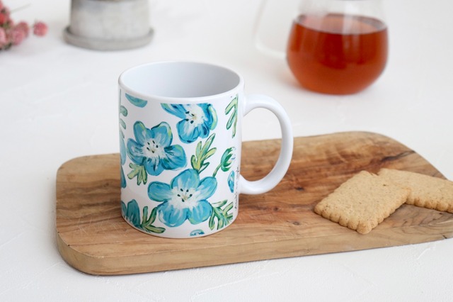 アートなひととき、ネモフィラのマグカップ ティータイムやプレゼント、母の日に
