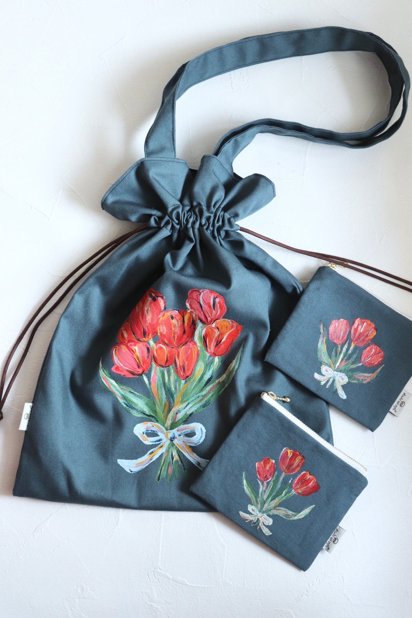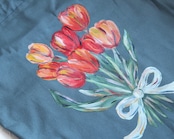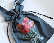 手描きのチューリップブーケ、巾着トートバッグ
