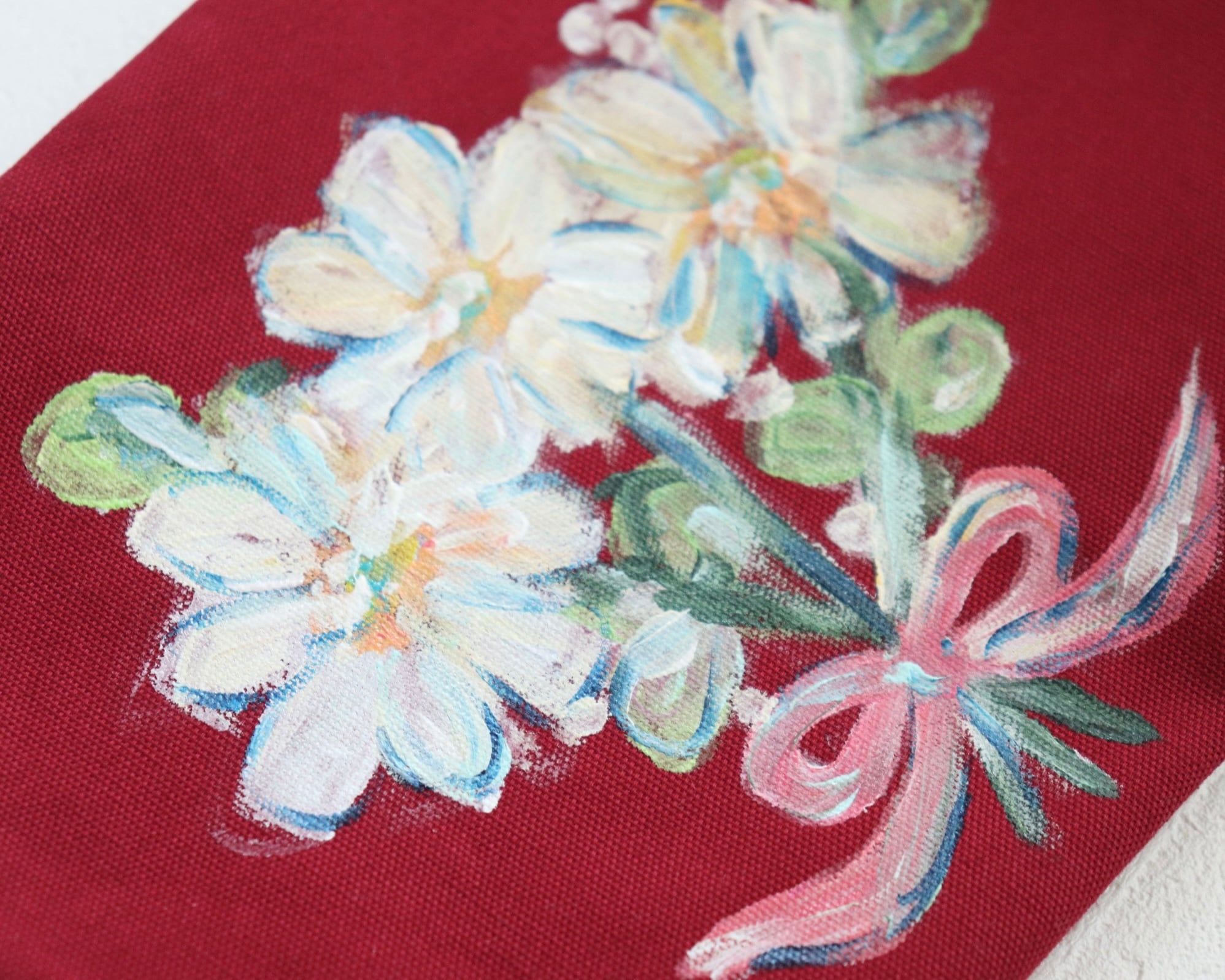 手描きのホワイトガーベラのブーケが描かれたミニポーチ
