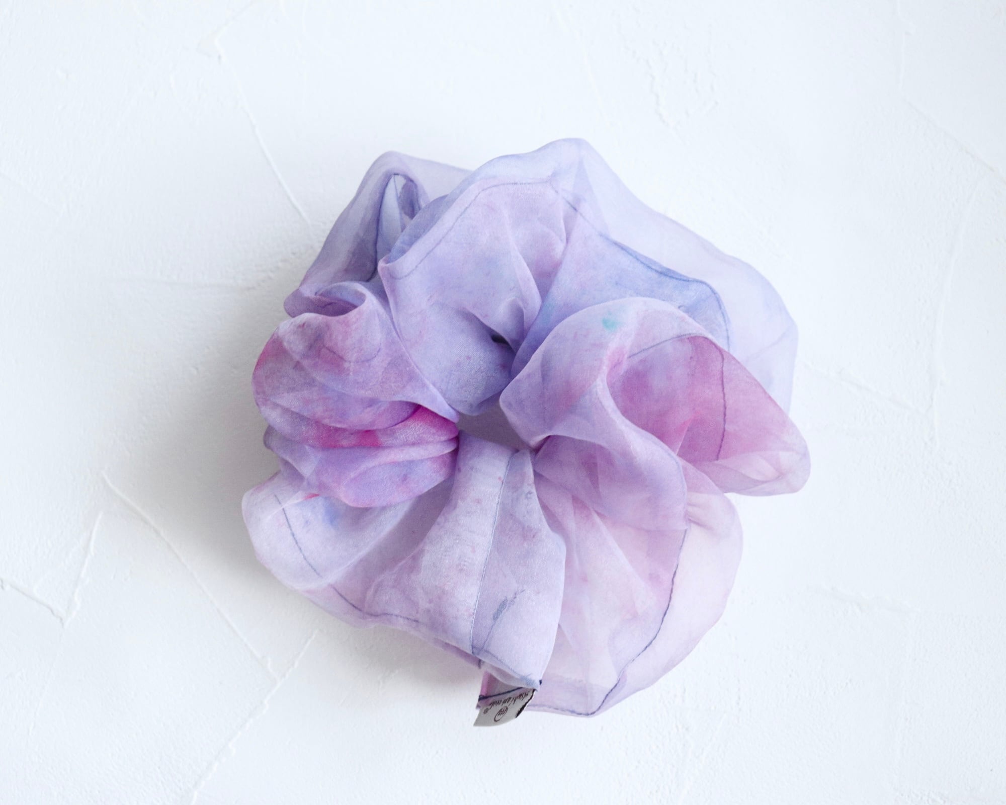 ひとつひとつ染めた色彩が目を惹く一点ものとなるシュシュ