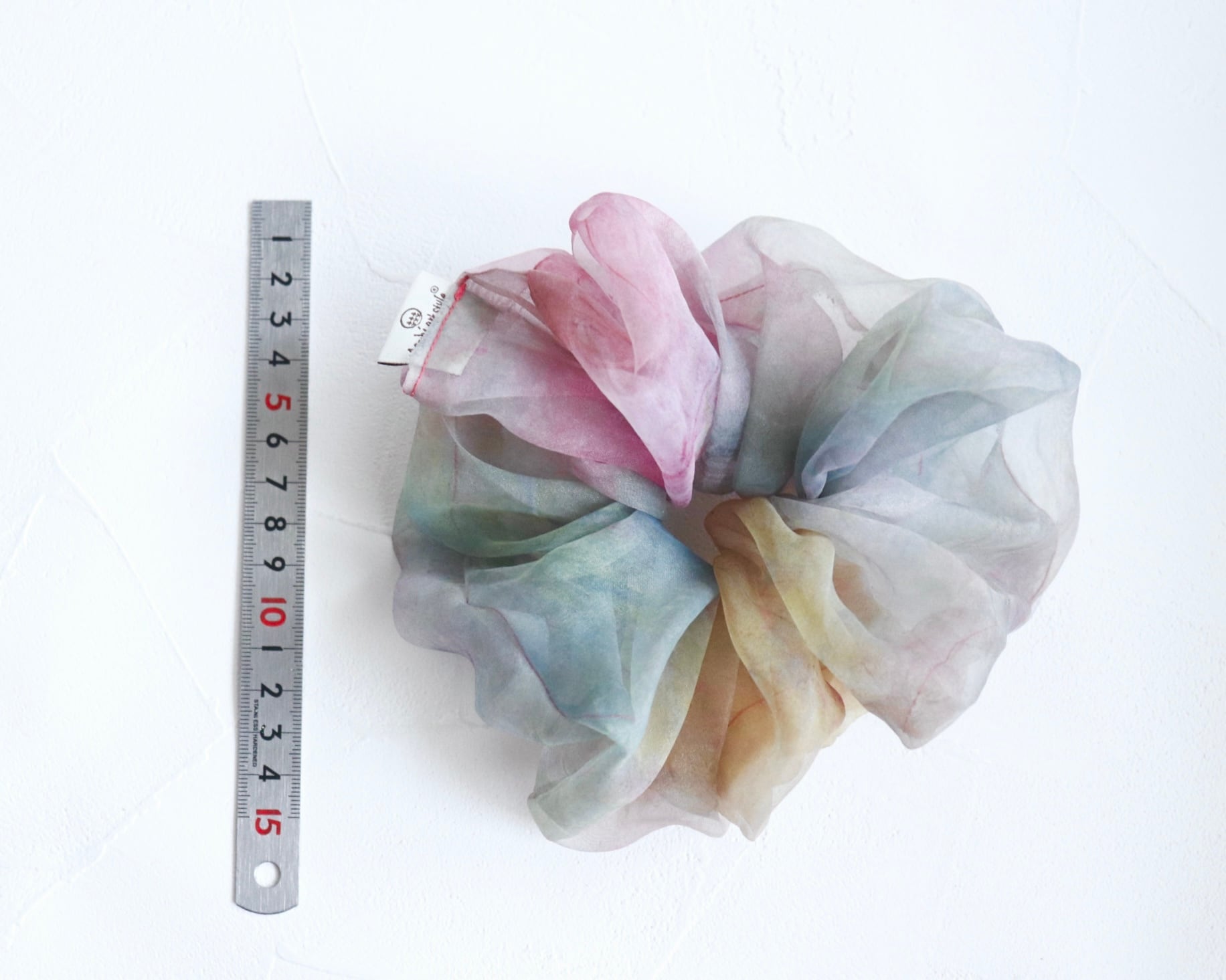 ひとつひとつ染めた色彩が目を惹く一点ものとなるシュシュ