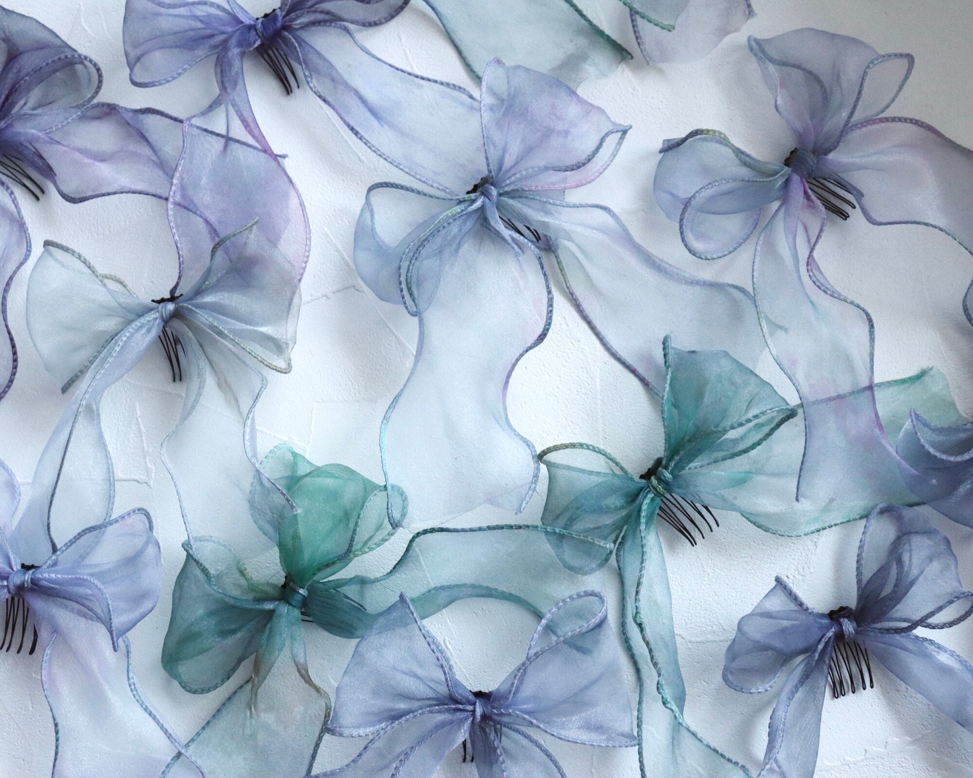 ひとつひとつ染めた色彩が目を惹く一点ものとなるリボンです