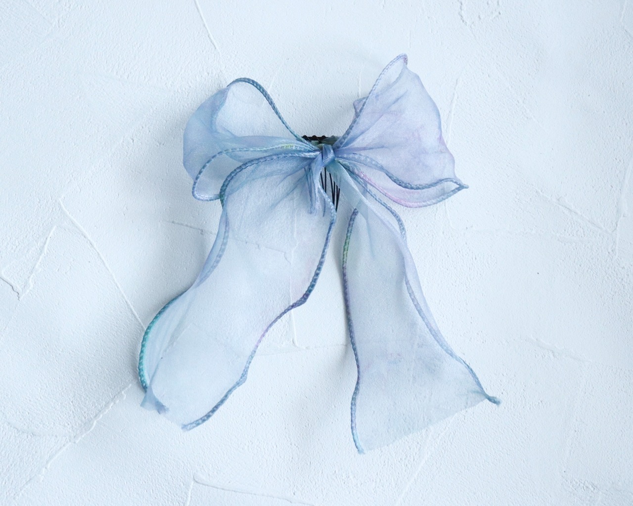 ひとつひとつ染めた色彩が目を惹く一点ものとなるリボンです