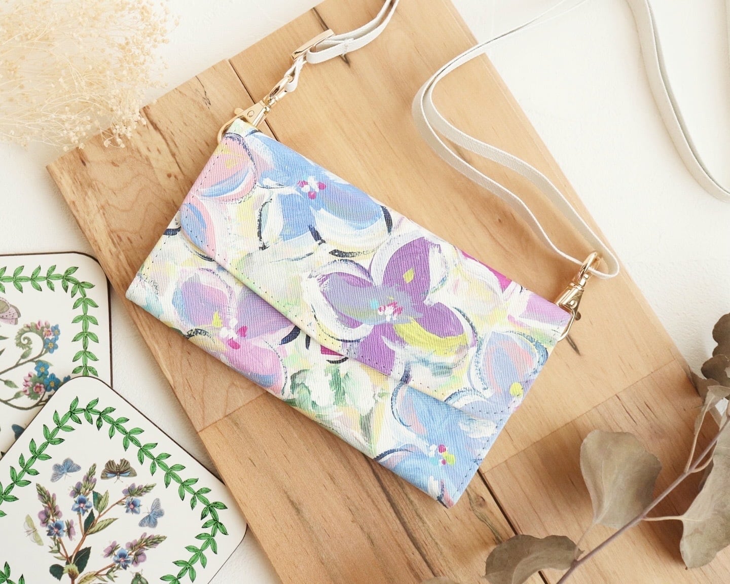 アートを持ち歩く、手帳型スマホケースショルダータイプ 紫陽花 iPhone Android対応