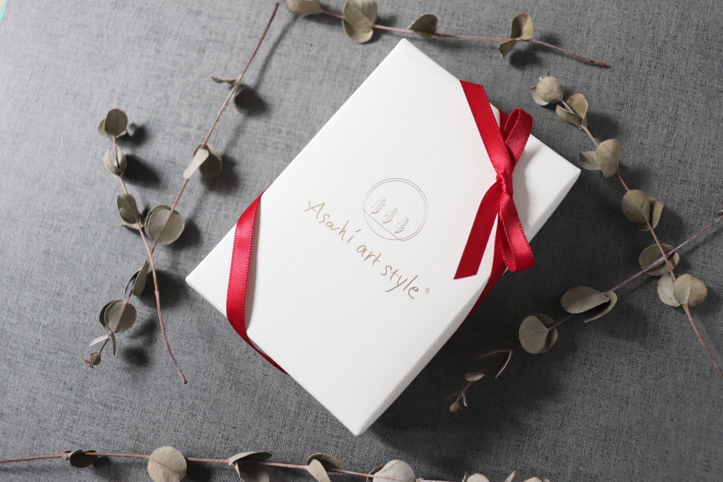 Asahi art styleオリジナルボックスに入れてリボンををまき、お届けいたします