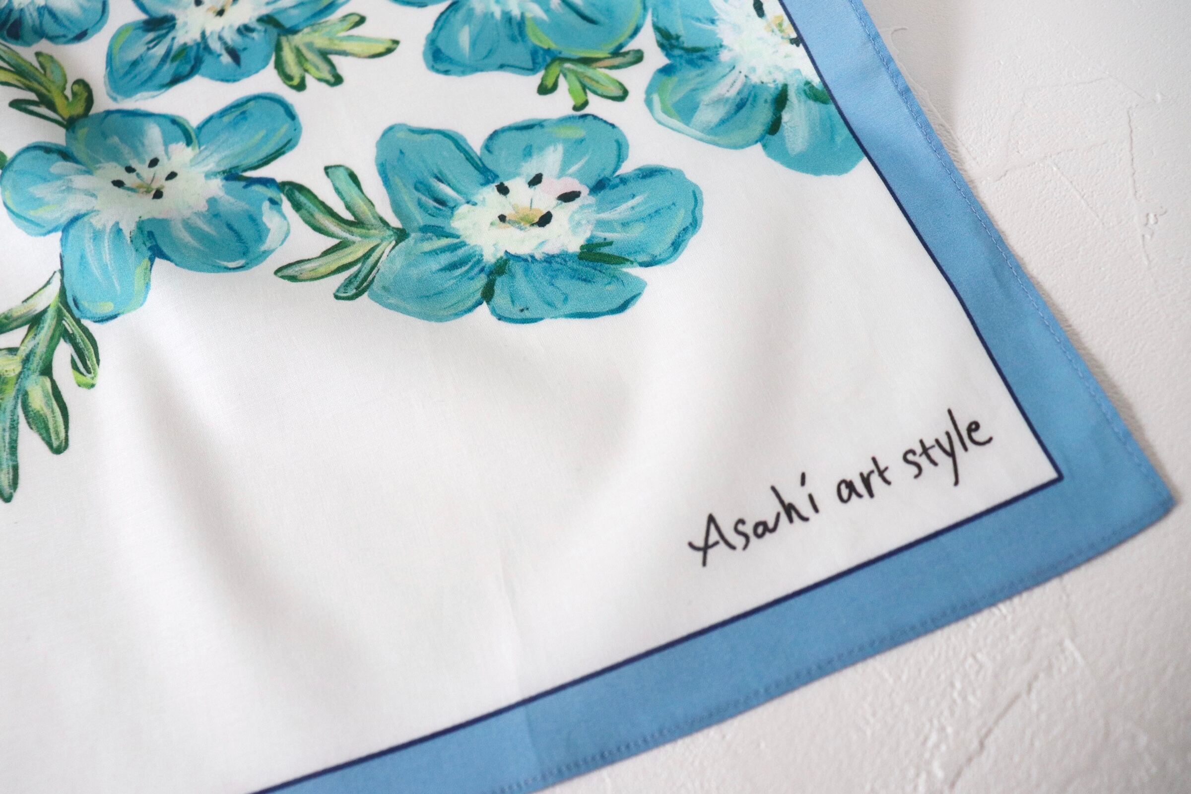 アートを持ち歩く、大判のハンカチ <ネモフィラ> スカーフにも ギフトラッピング