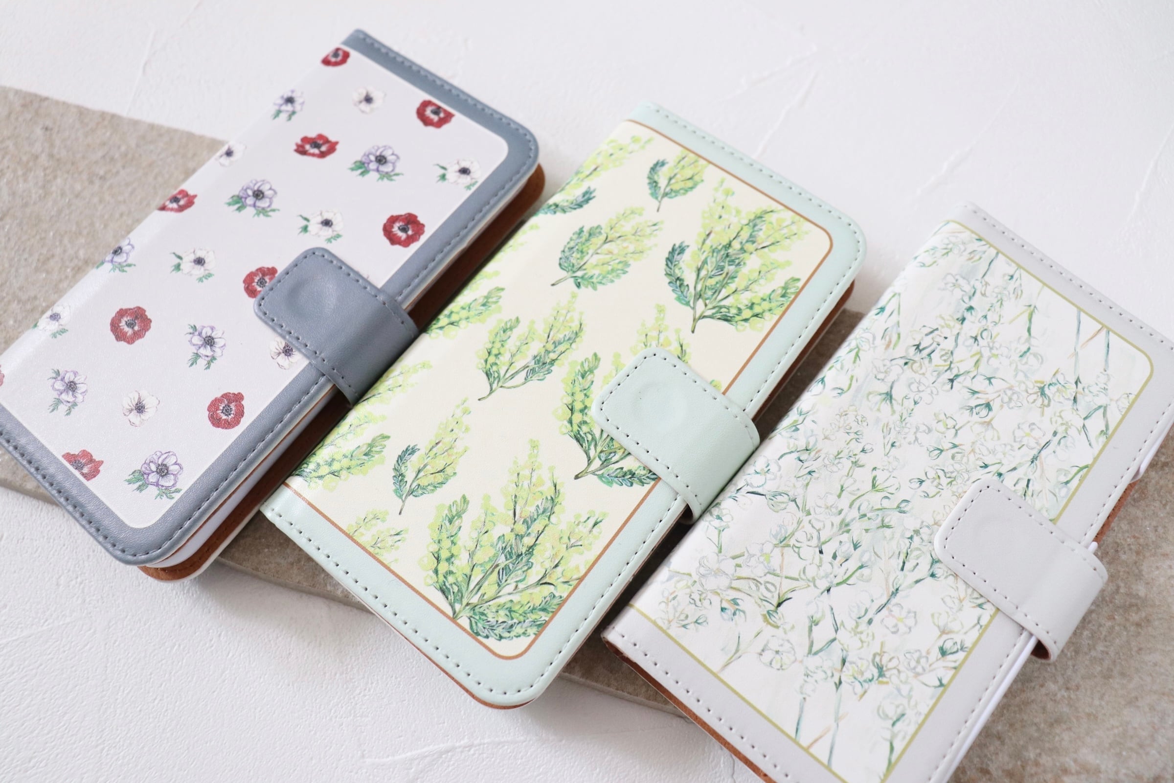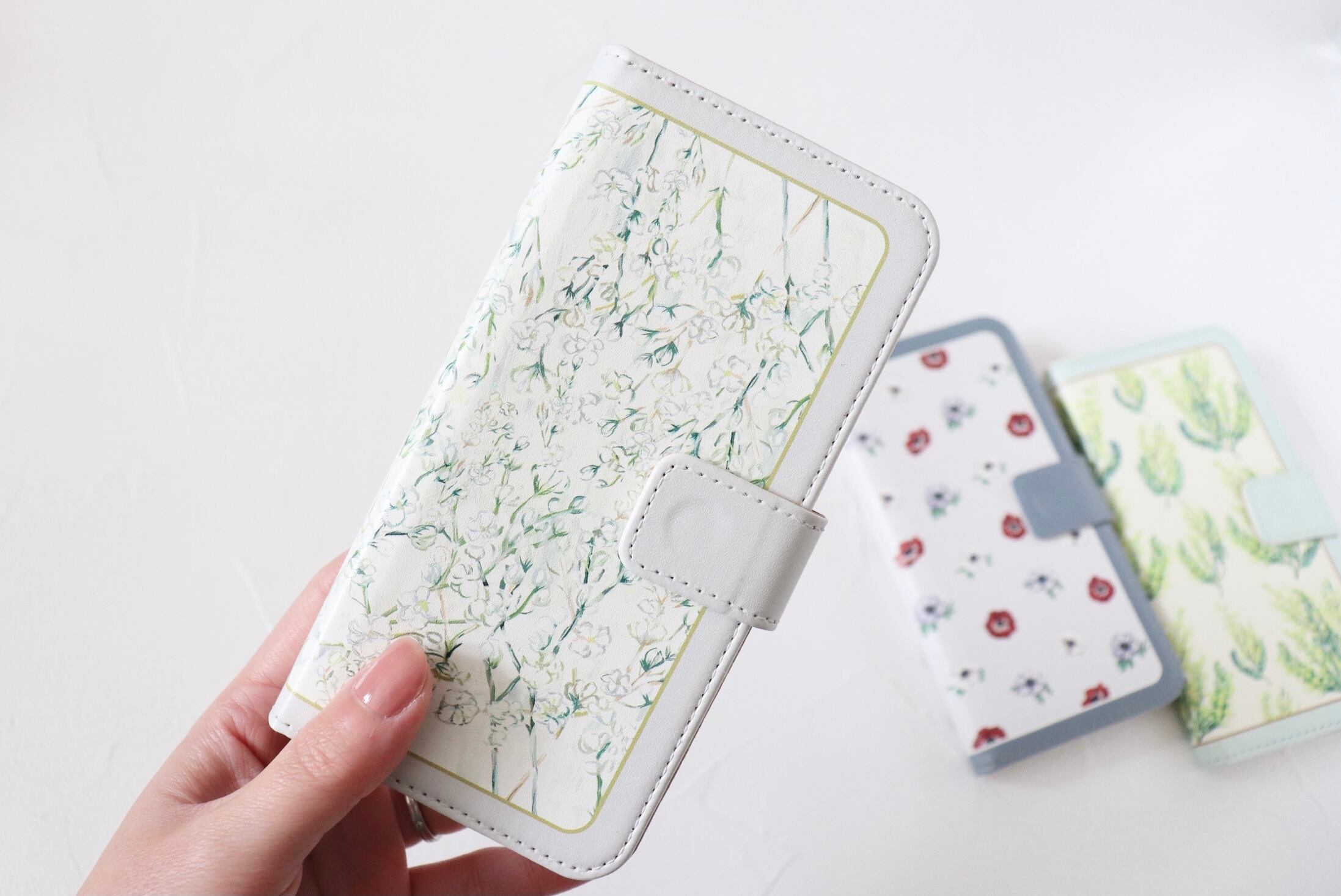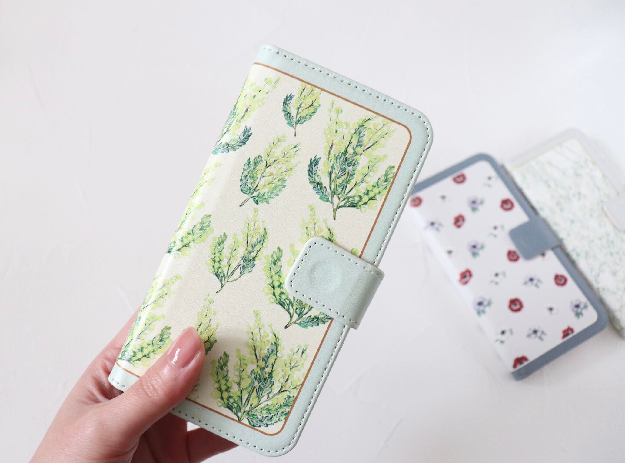 アートを持ち歩く、手帳型スマホケース <ミモザ、かすみ草、アネモネ>iPhone13 Android対応 プレゼントにも