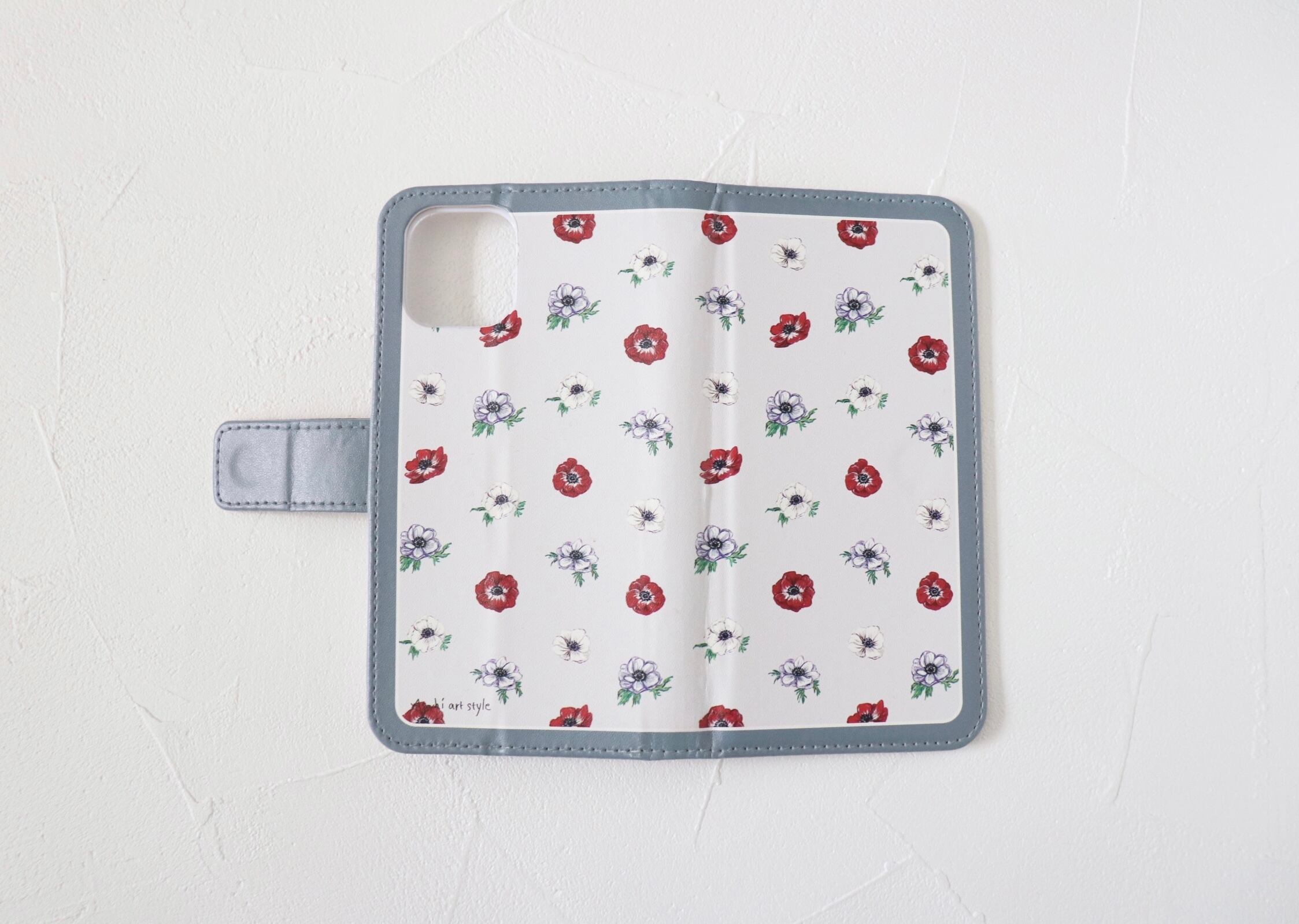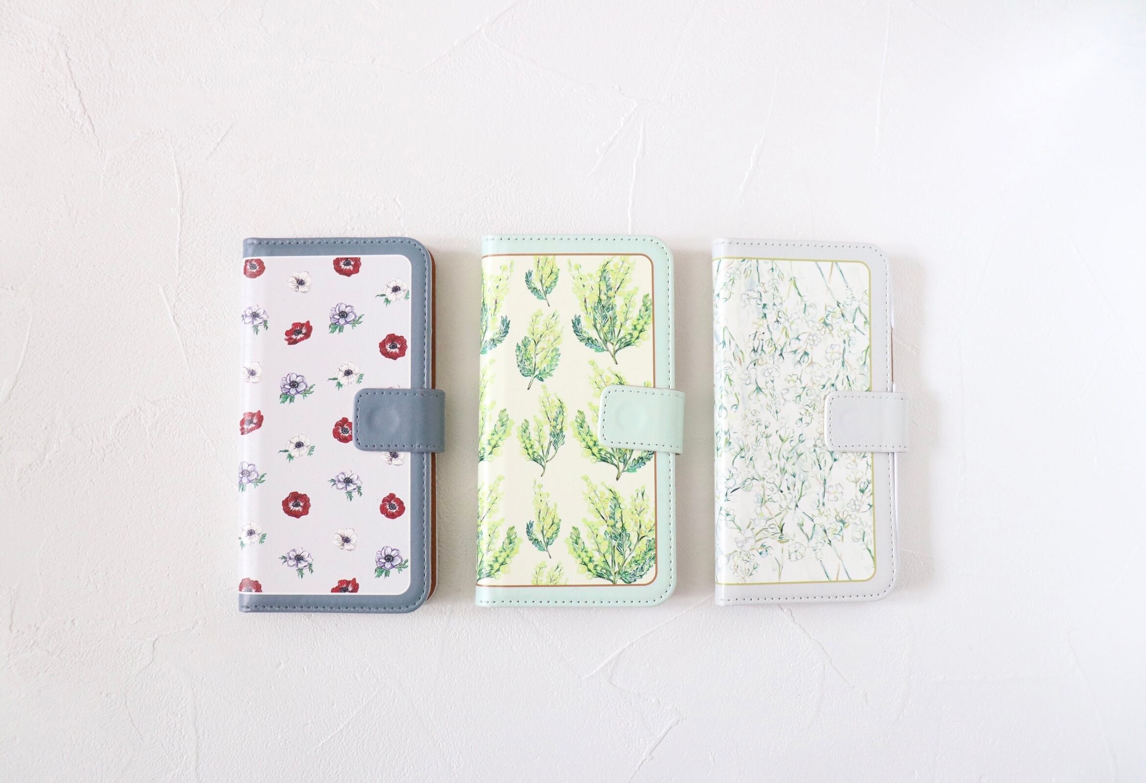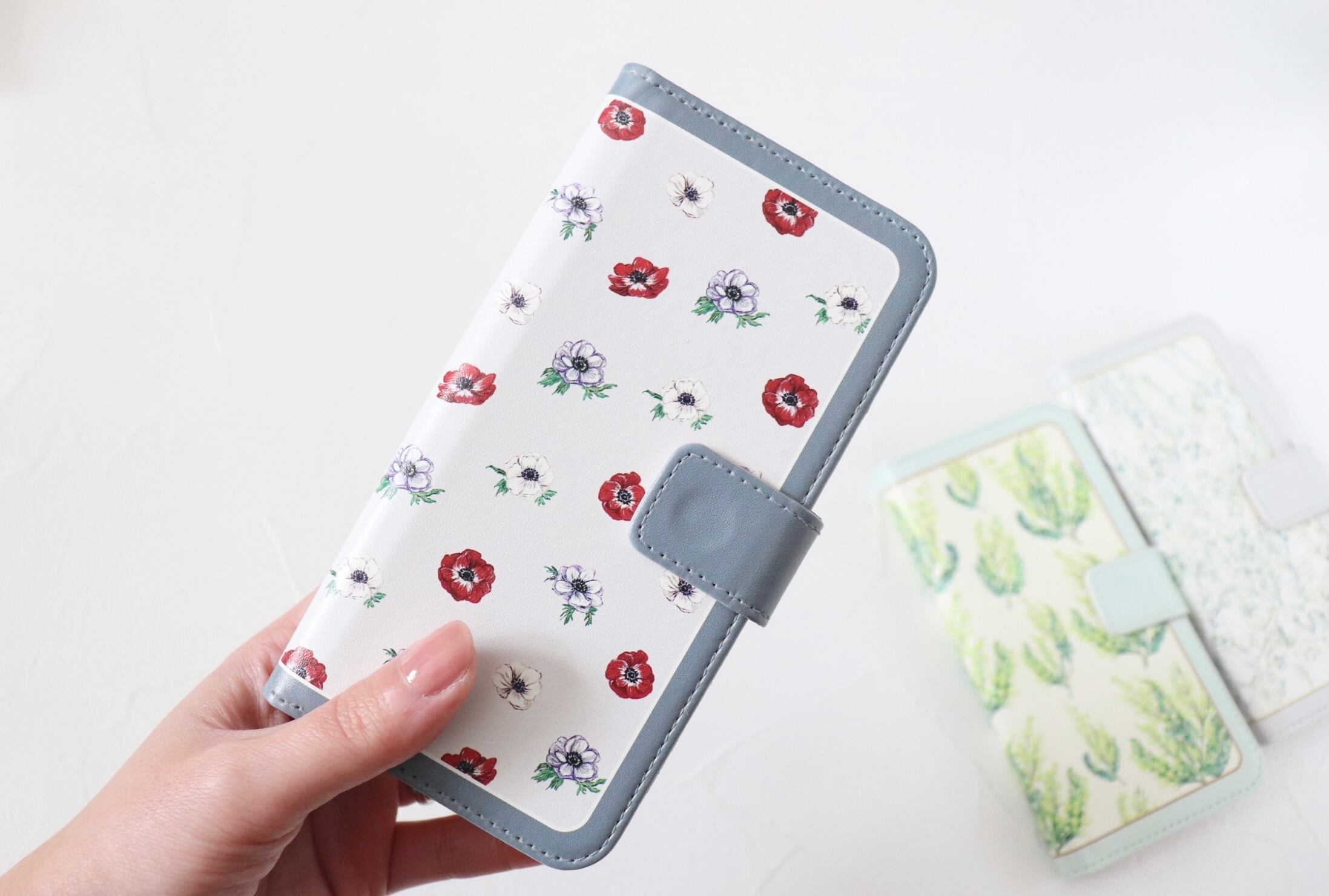 アートを持ち歩く、手帳型スマホケース <ミモザ、かすみ草、アネモネ>iPhone13 Android対応 プレゼントにも