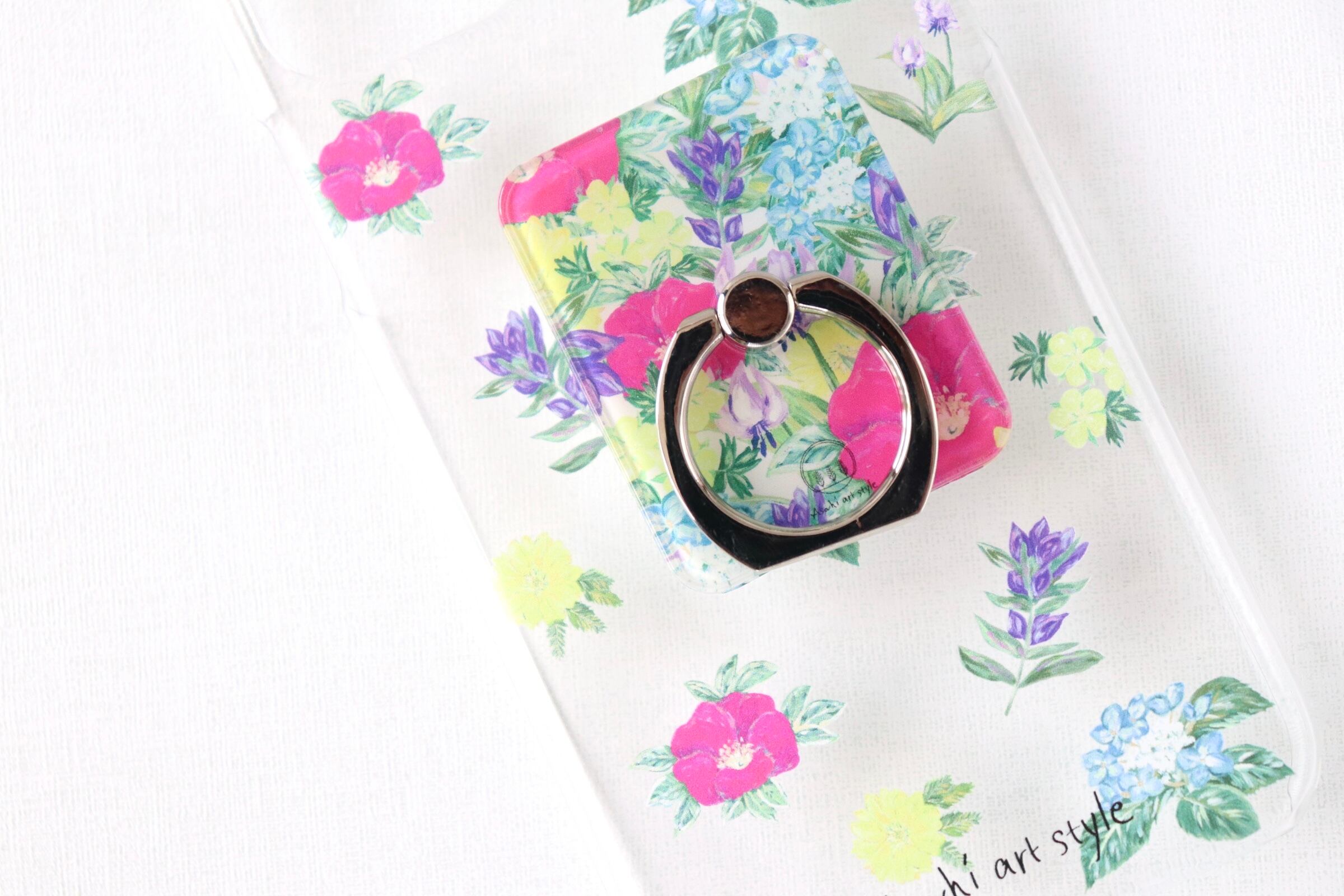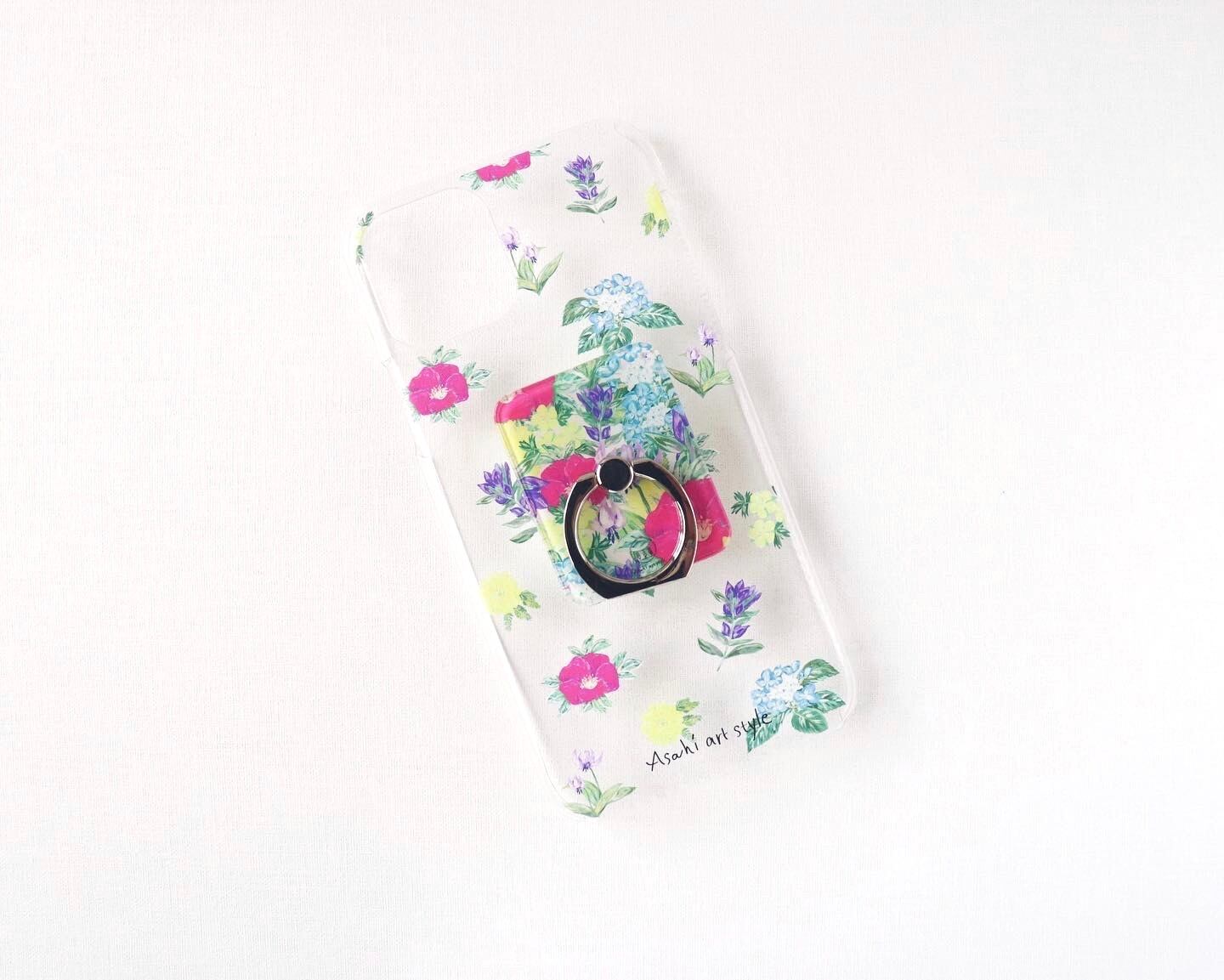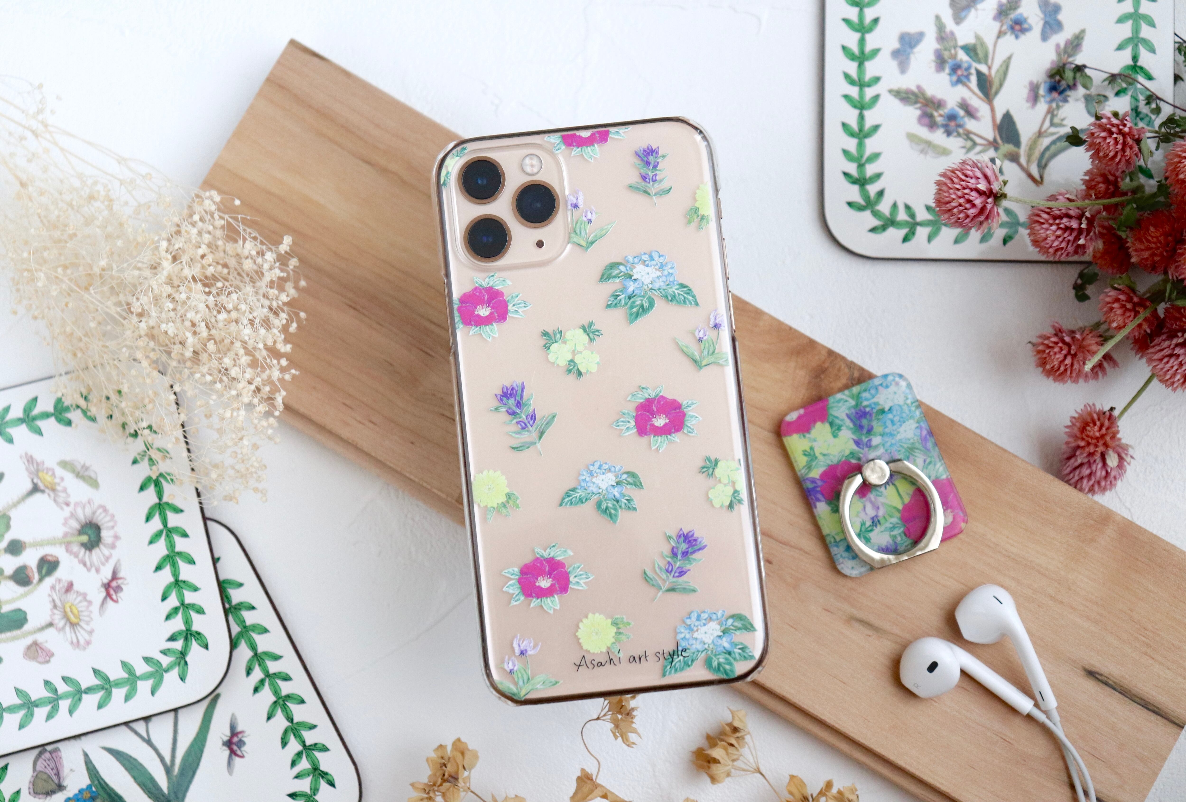描いたお花たちをランダムに配置し、透明感あるクリアケースにプリントしました!