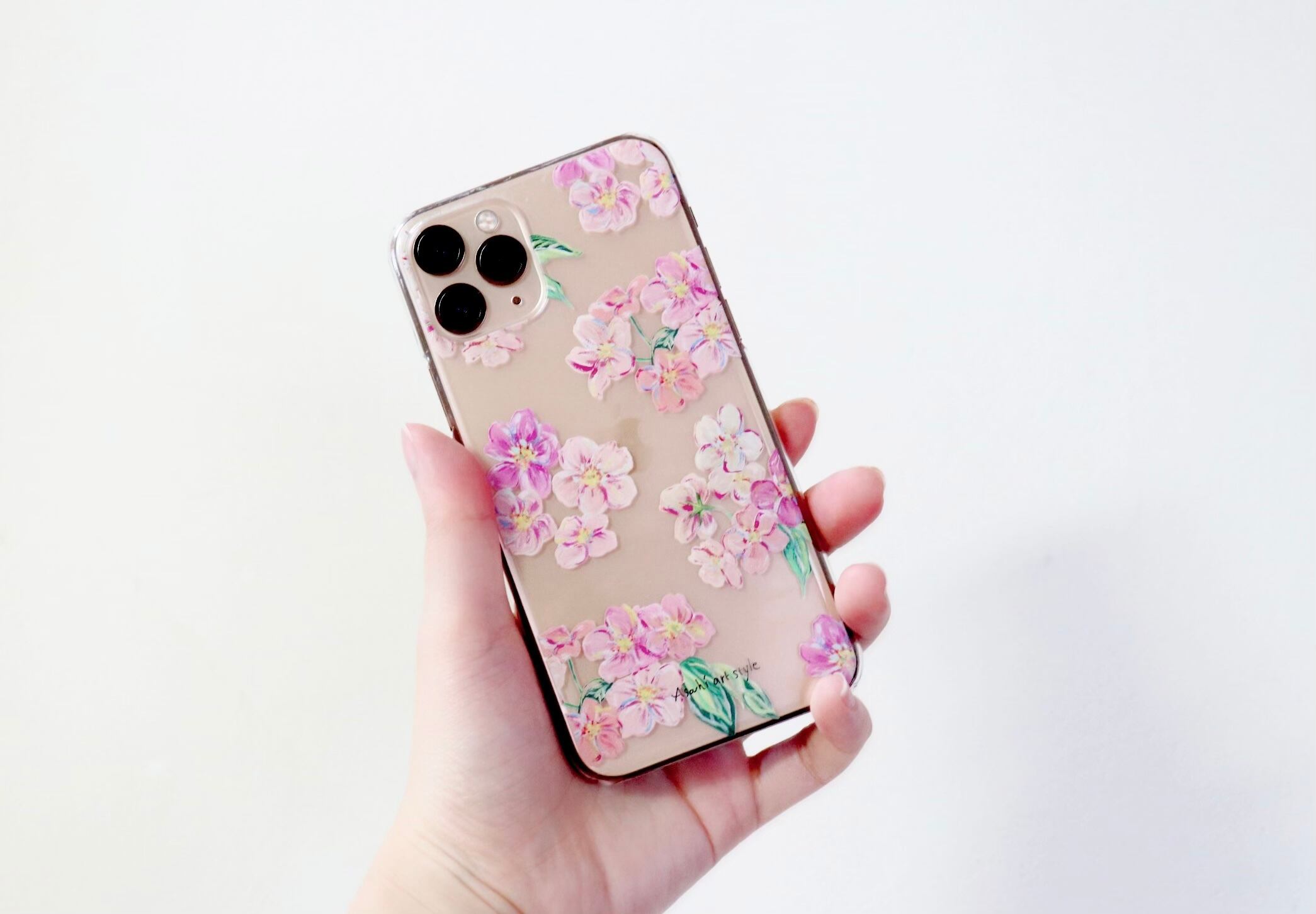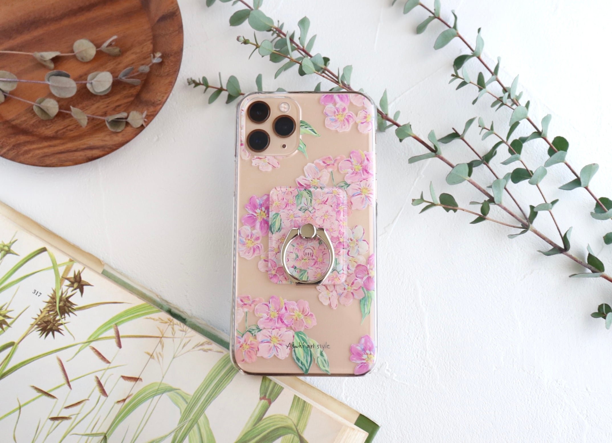 描いたお花たちをランダムに配置し、透明感あるクリアケースにプリントしました!