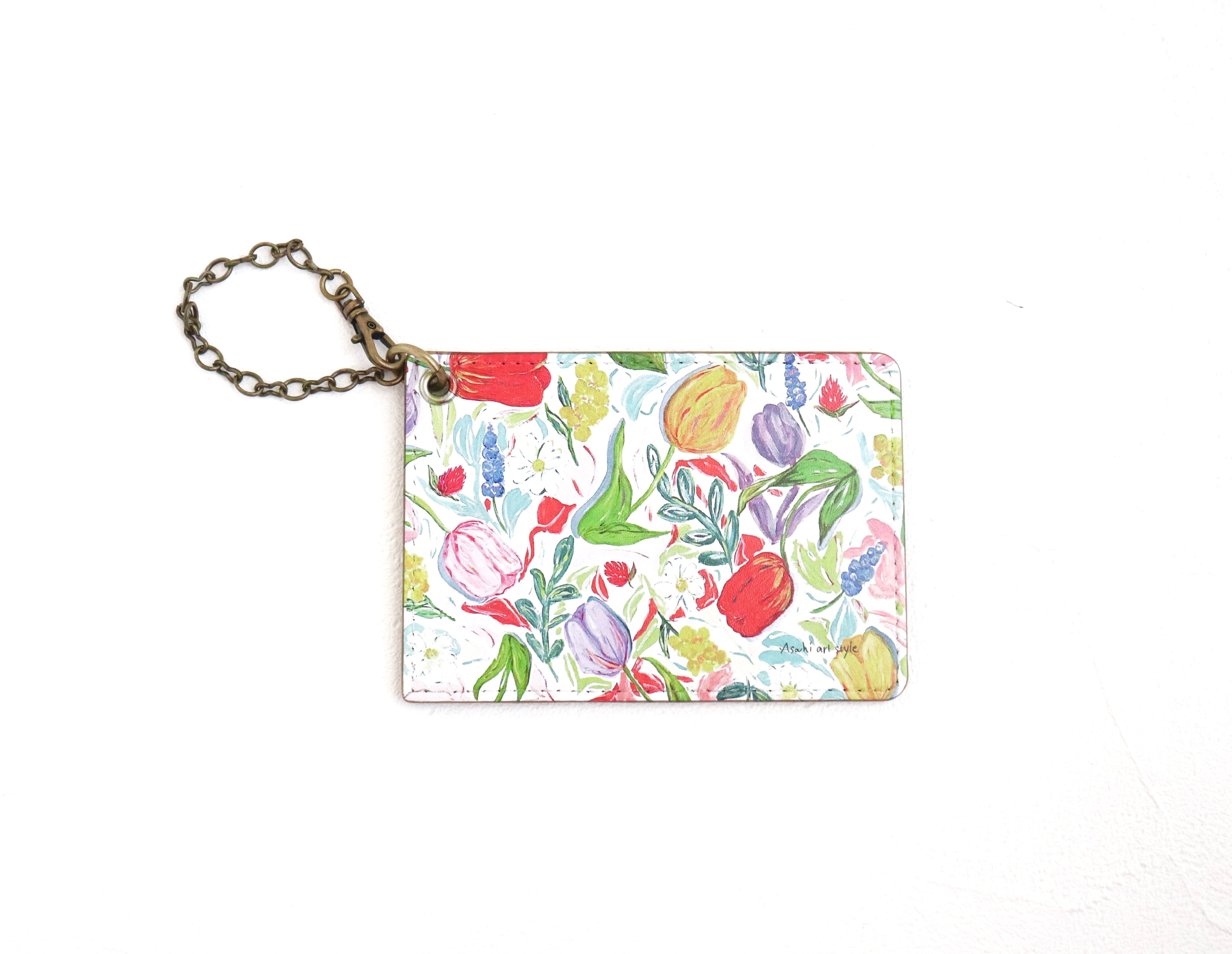 アートを切り取ったパスケース <春を告げる花々> チェーン付き、定期入れ