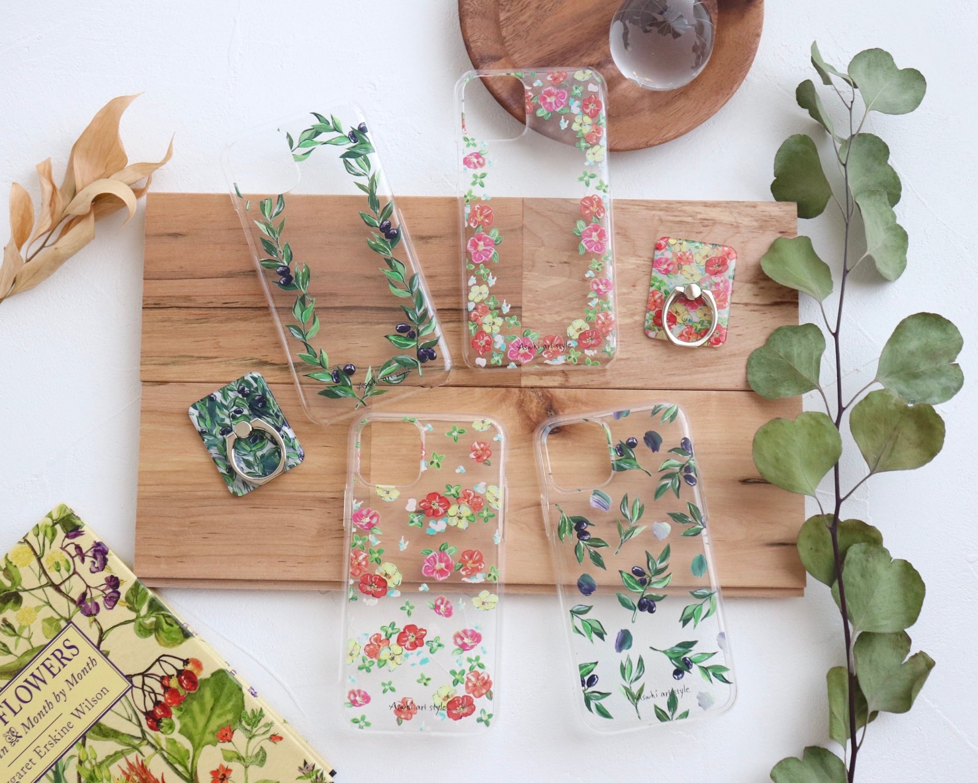 描いたお花たちを額縁のように配置し、透明感あるクリアケースにプリントしました
