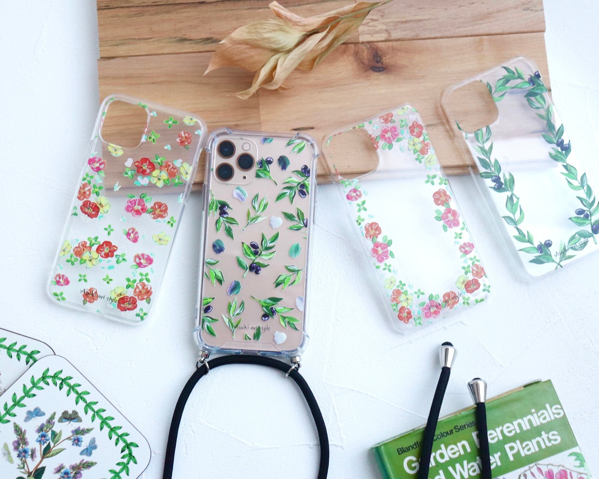 オリーブとポーチュラカのクリアショルダースマホケース iPhoneのみ