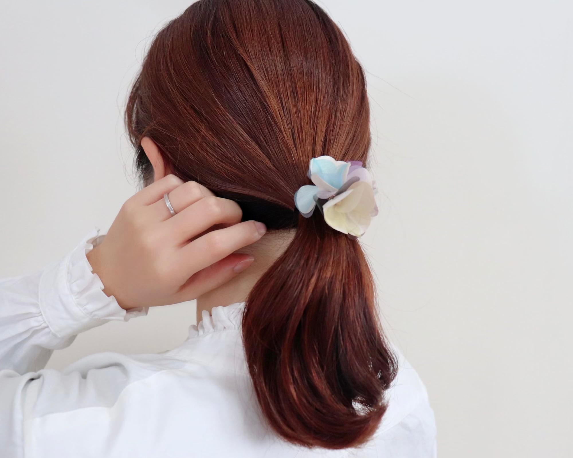 オリジナルの柔らかなオーガンジー生地を使用した色鮮やかなヘアアイテム