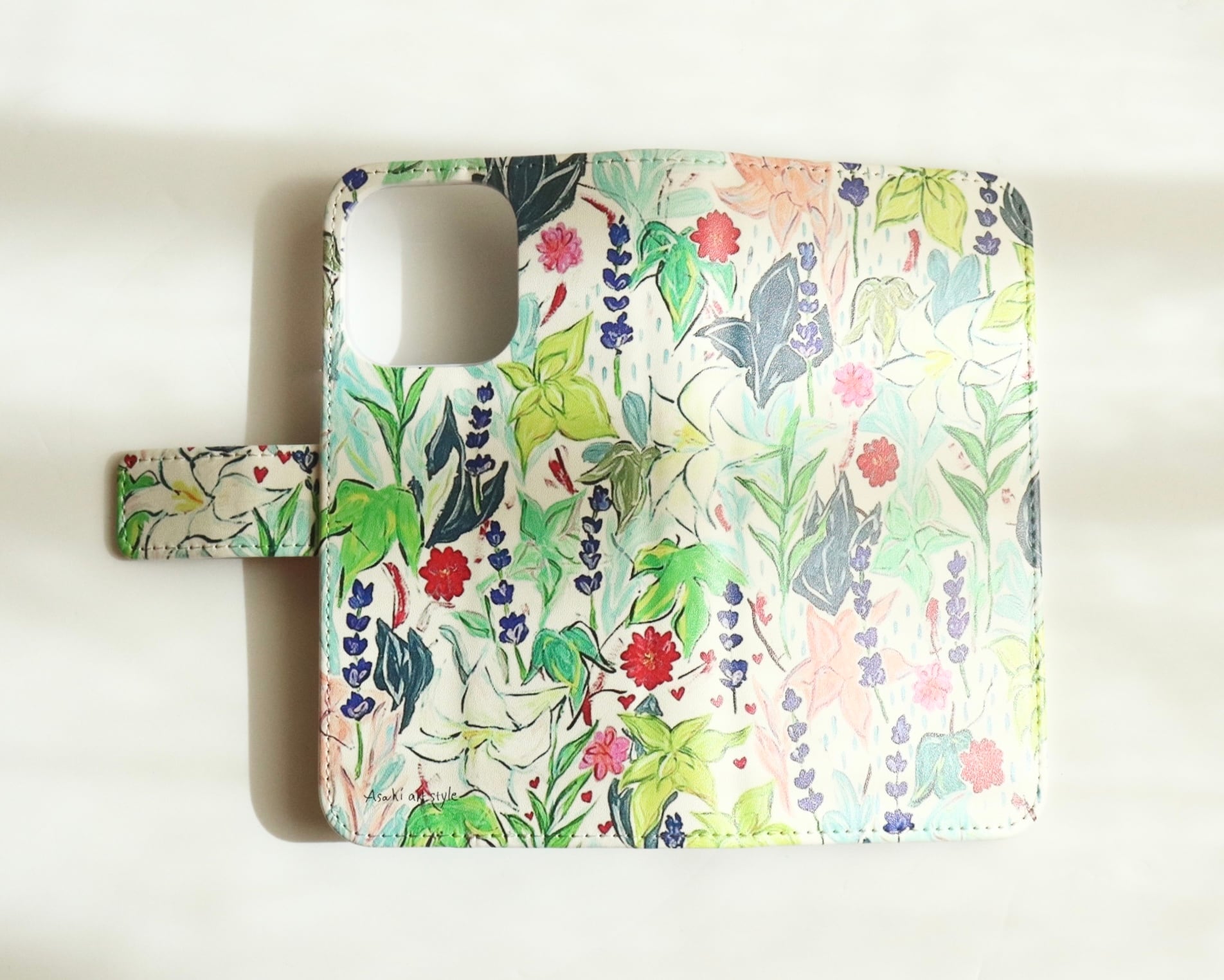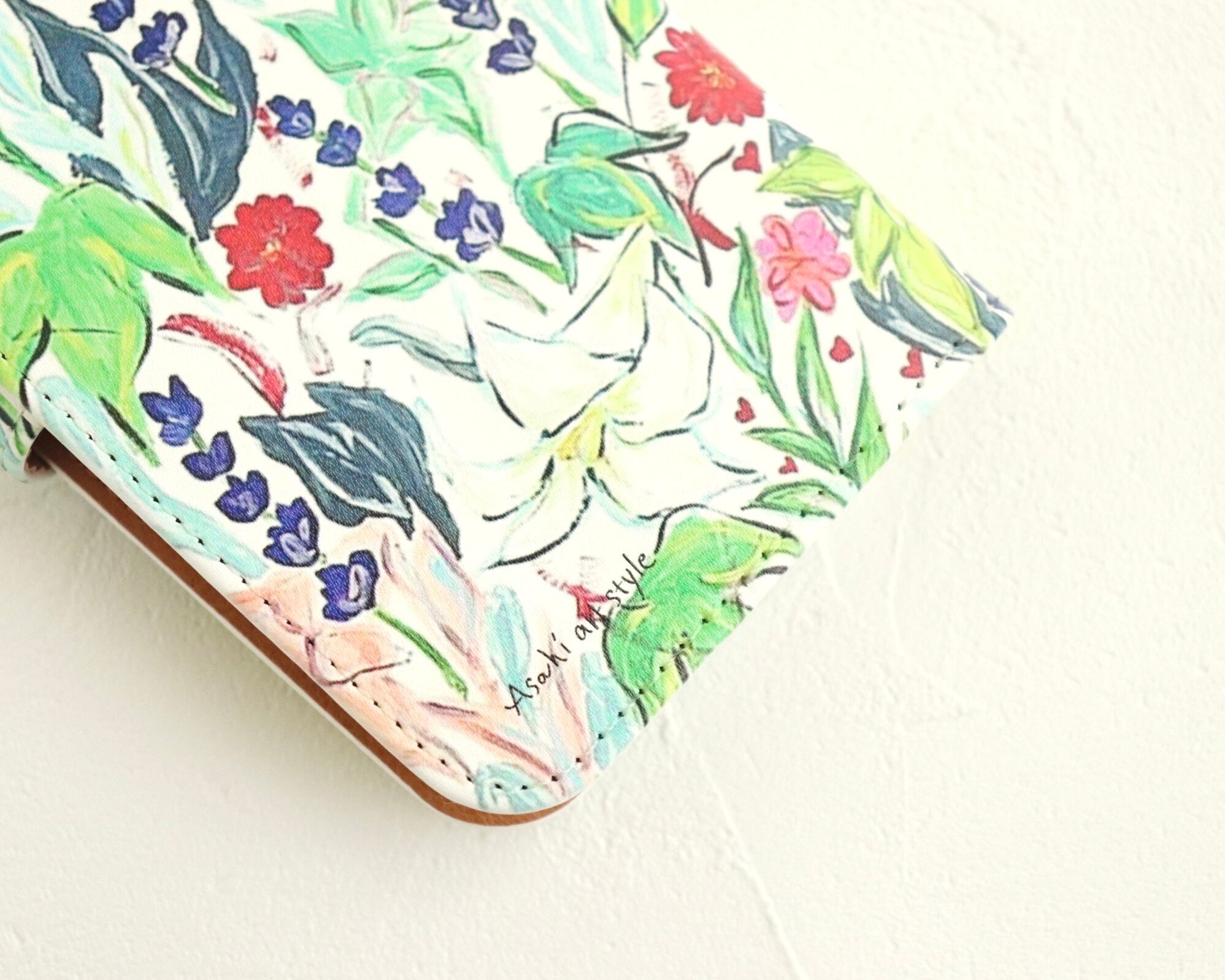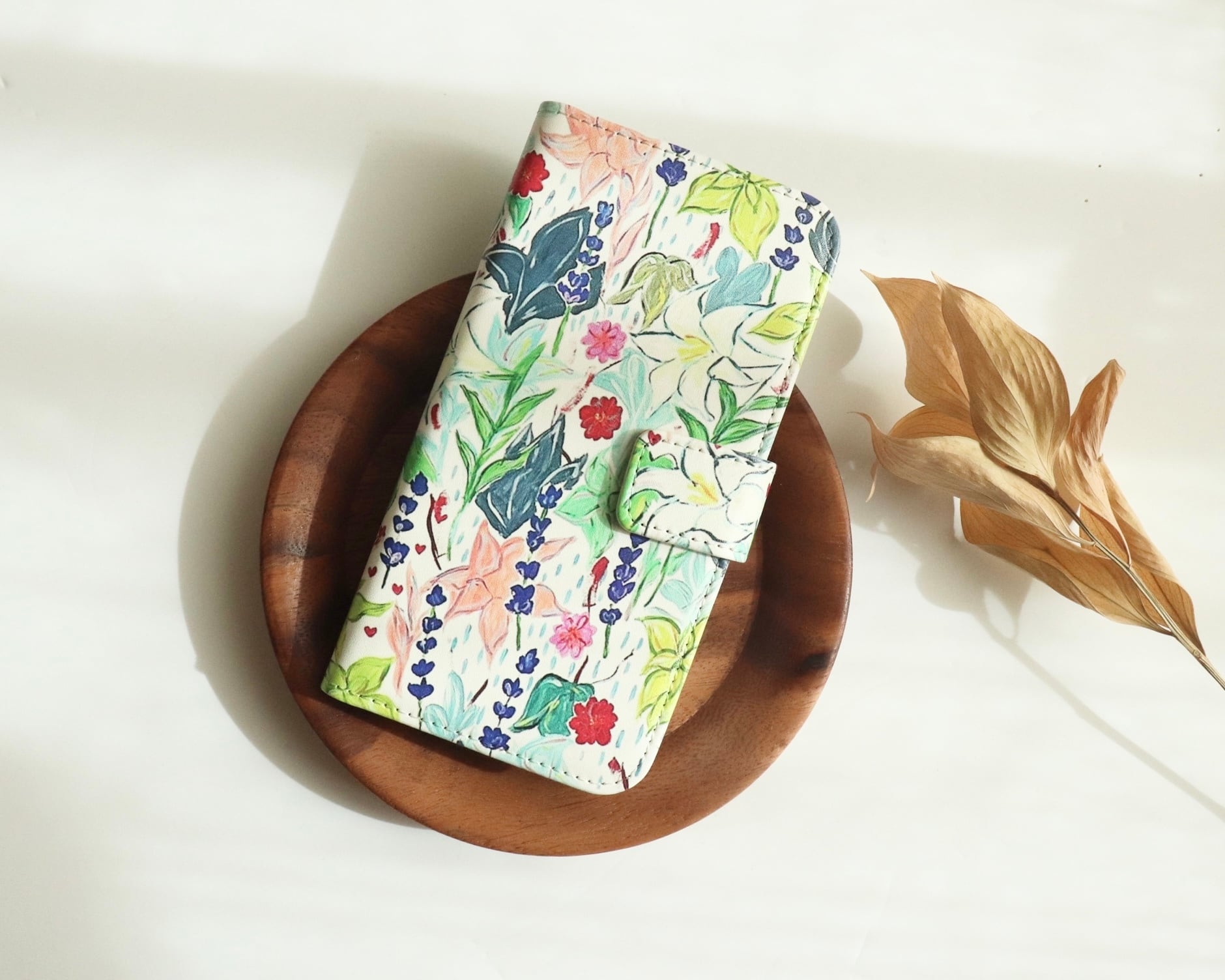 アートを持ち歩く、手帳型スマホケース <百合の花畑> iPhone14 Android対応 プレゼントにも