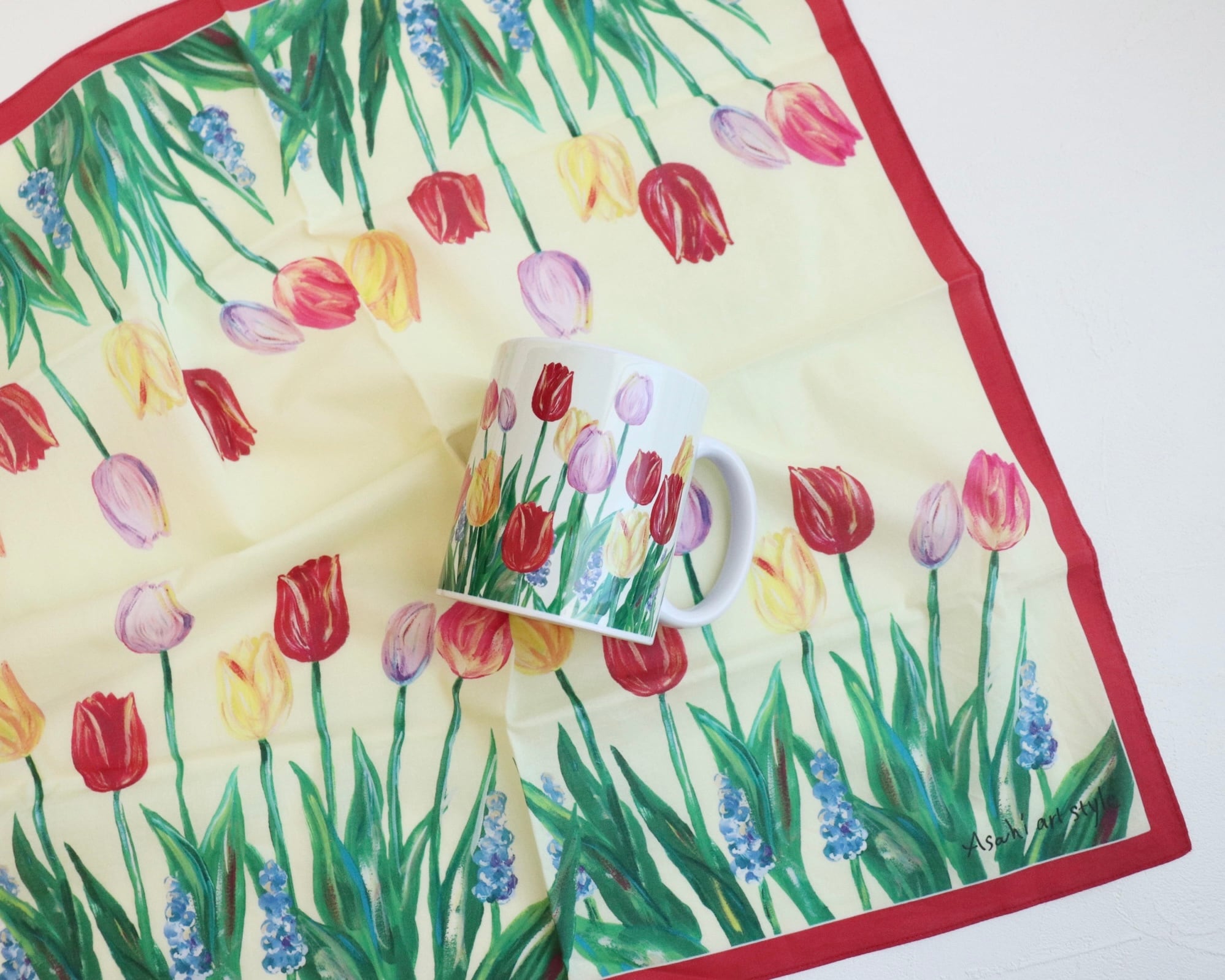 チューリップのマグカップとハンカチセット ティータイムやプレゼント、母の日に