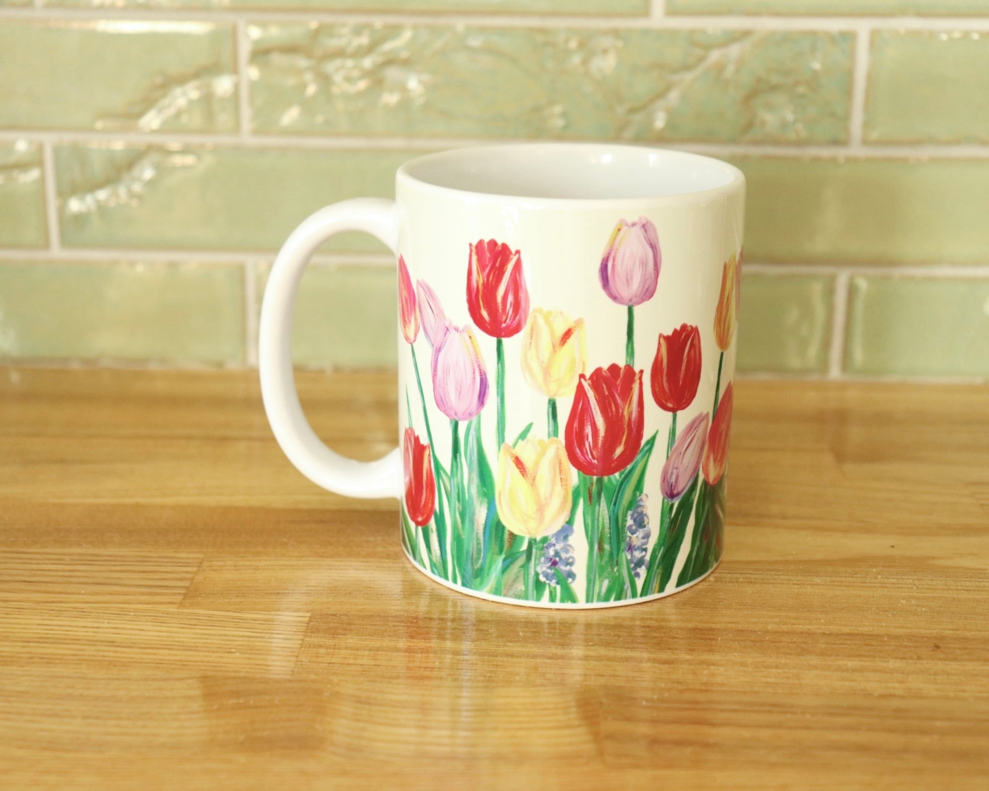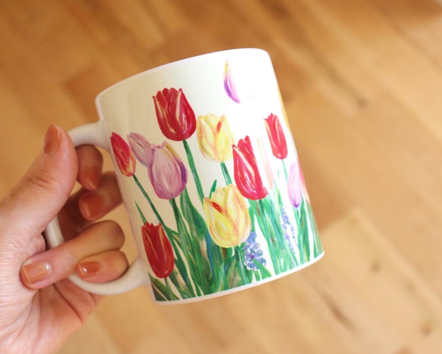 アートなひととき、チューリップのマグカップ ティータイムやプレゼント、母の日に