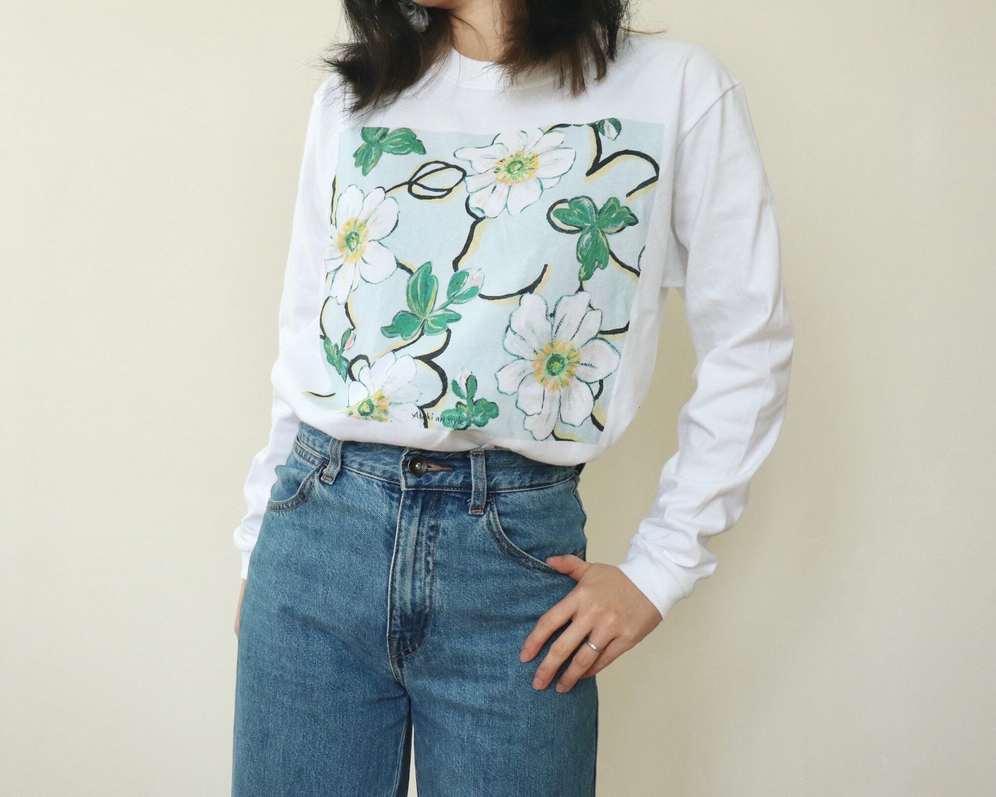 こちらのロンTは、画家のAsahiが絵描いたオリジナルアートをもとに制作しております。