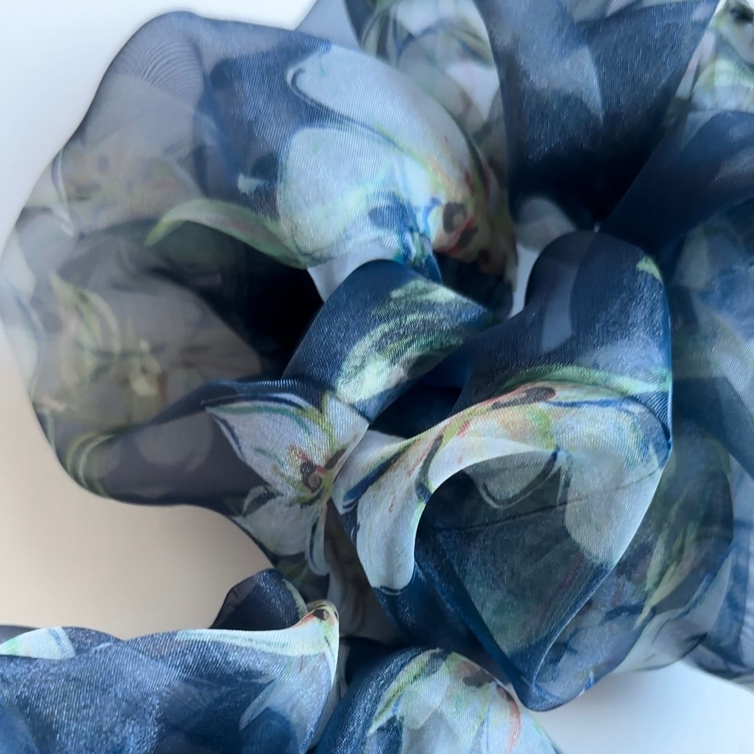 百合のアートシュシュ <Asahi art styleオリジナルテキスタイル> お花柄のビッグシュシュ