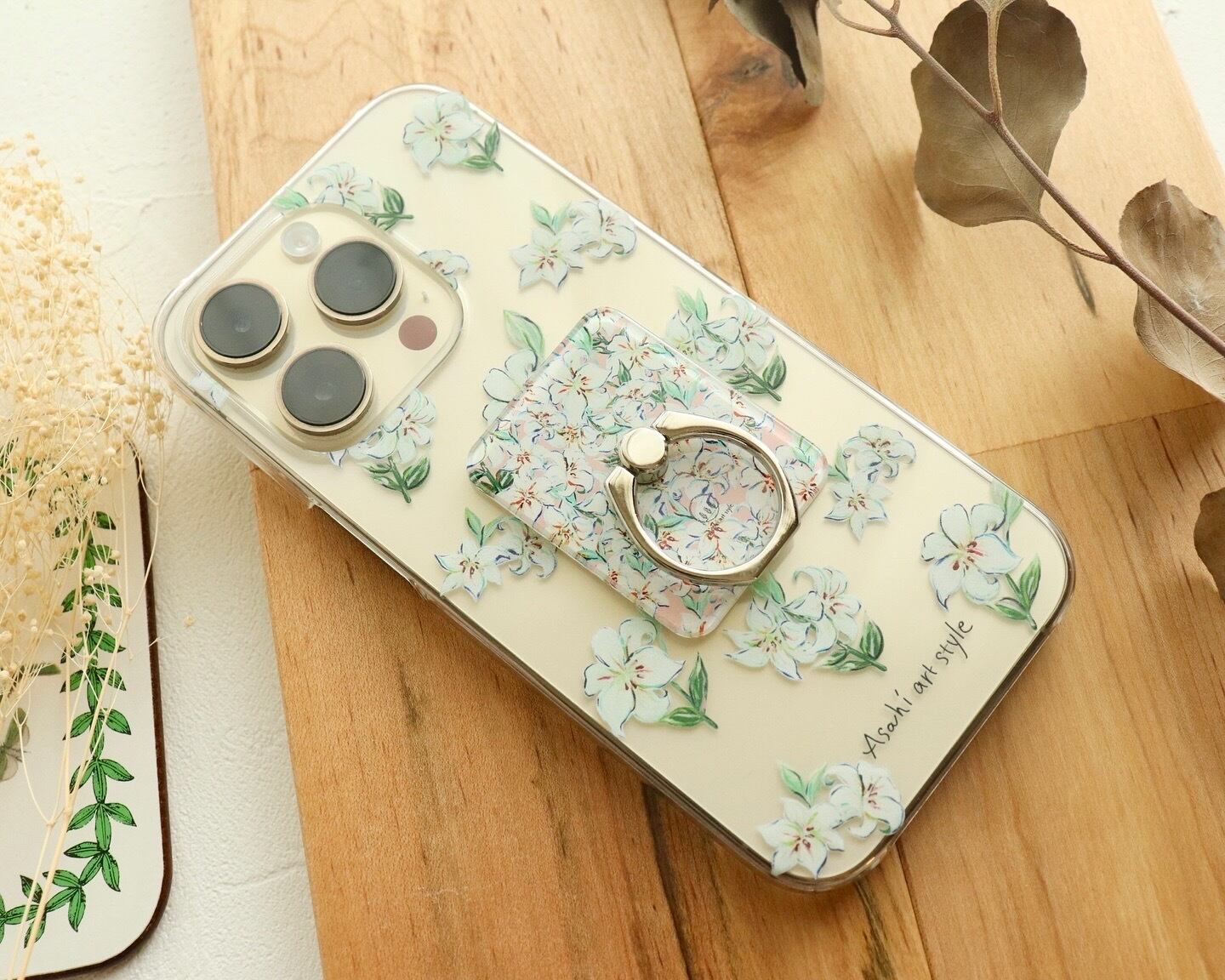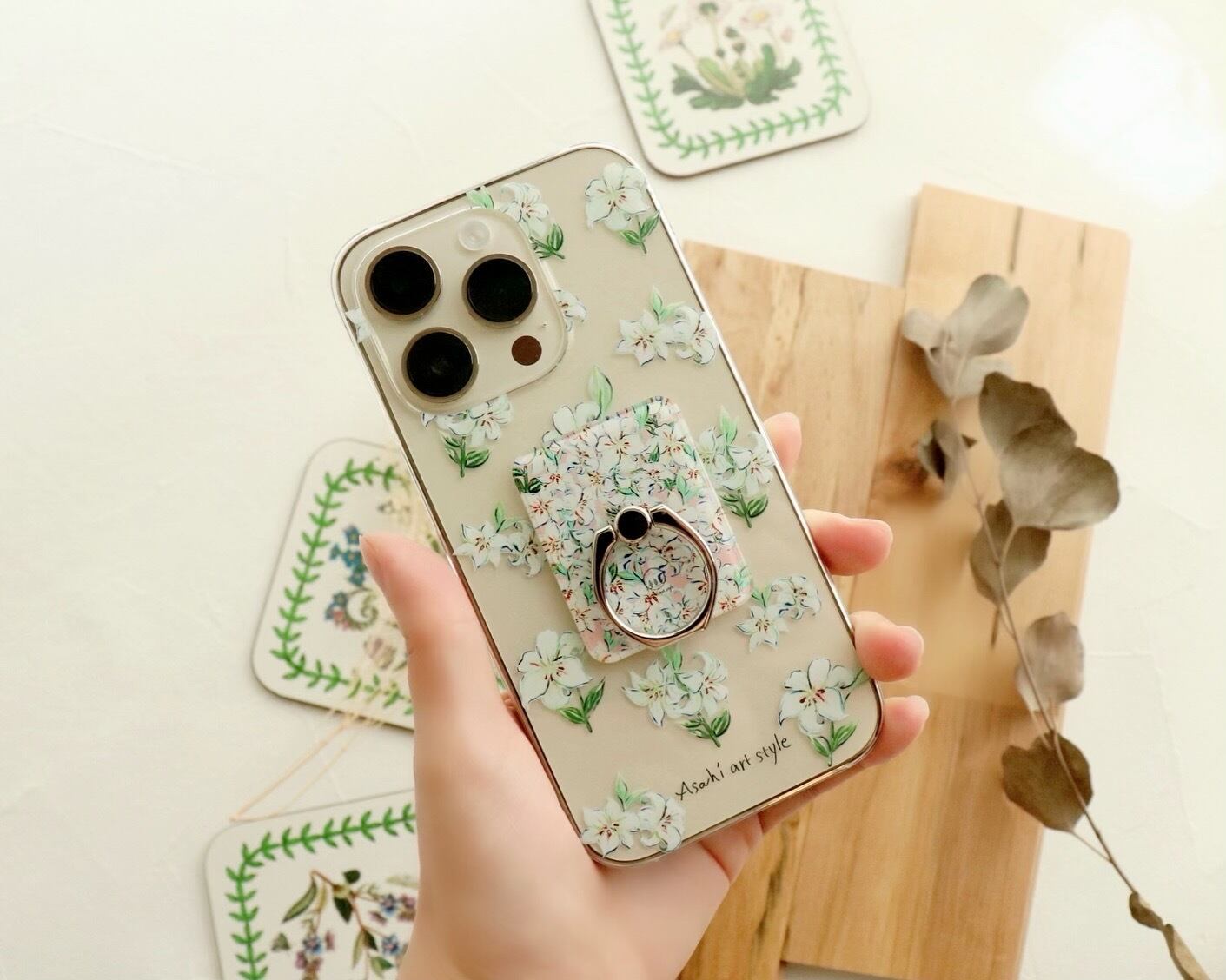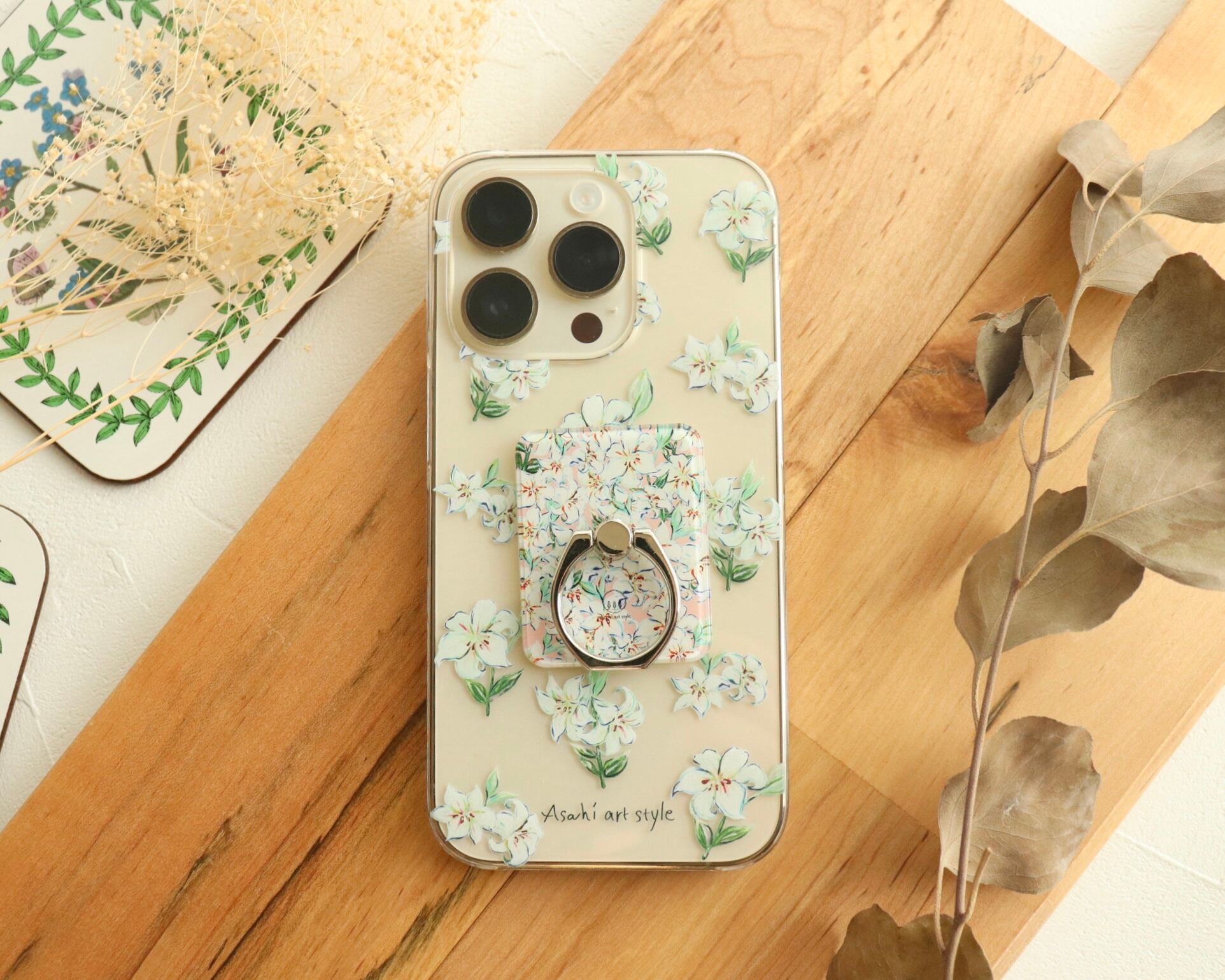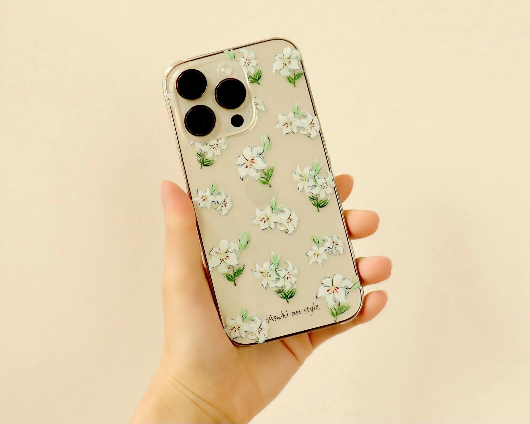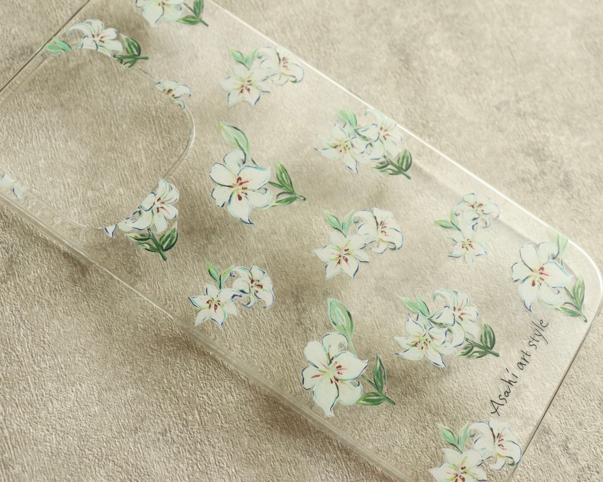 百合のクリアスマホケース 全機種対応 iPhone15、 Android対応