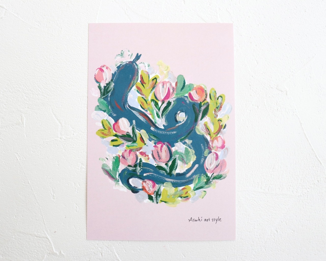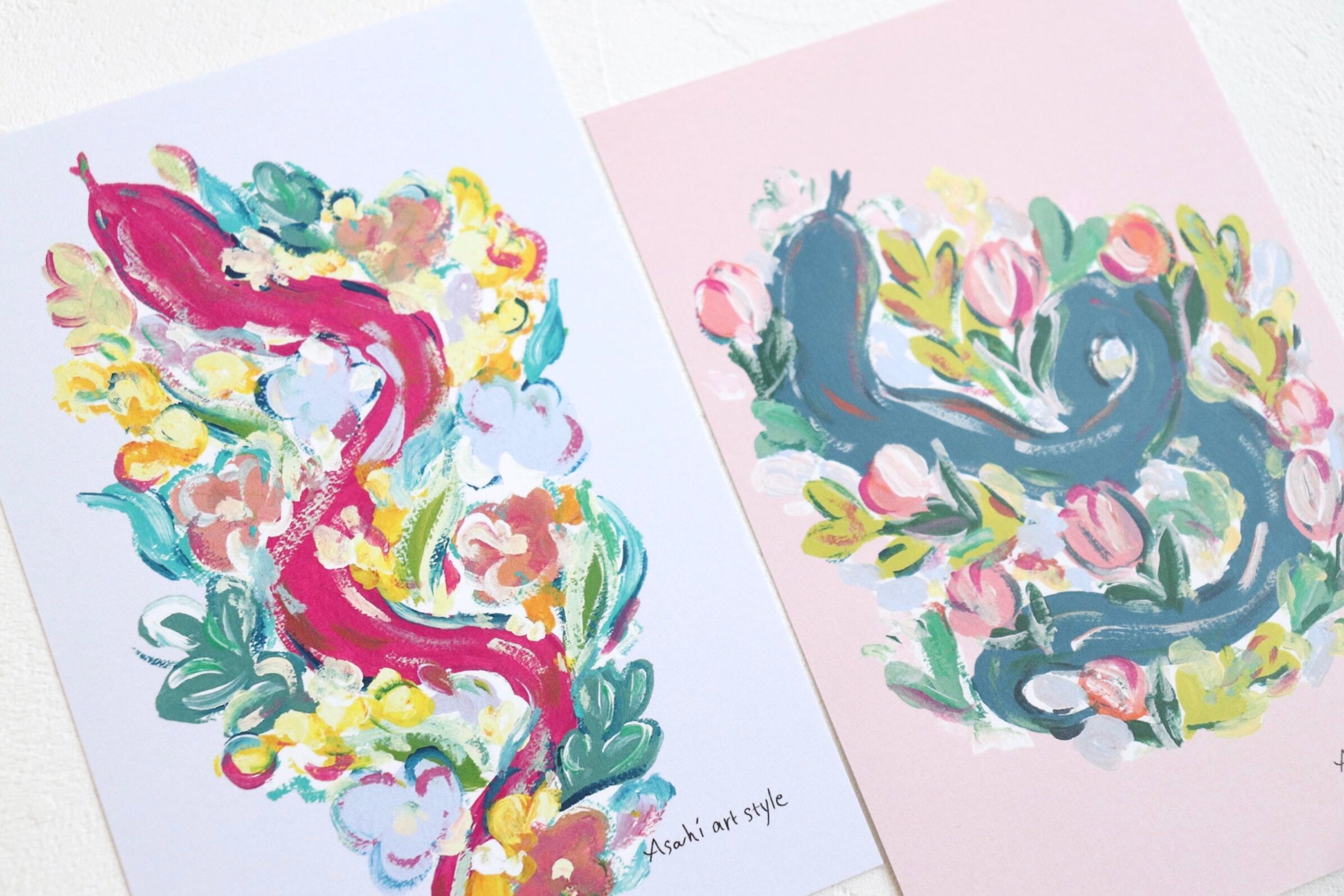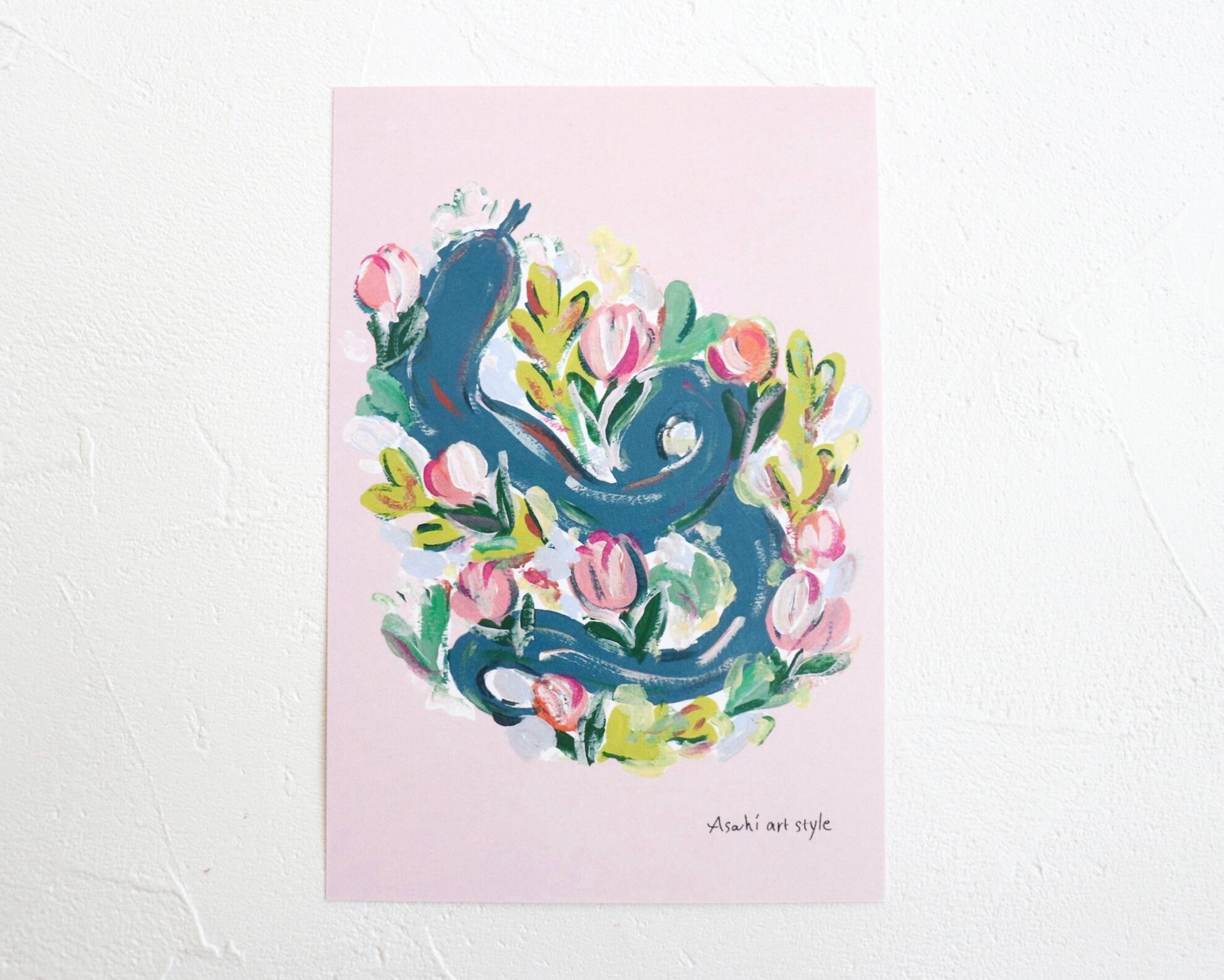 ポストカード 「花に囲まれた ヘビ 」2枚セット メッセージカードにも